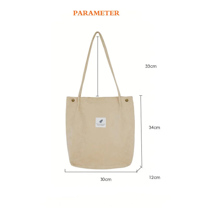 Stay stylish and eco-friendly with this corduroy shoulder bag. Perfect for shopping, outings, and daily use.