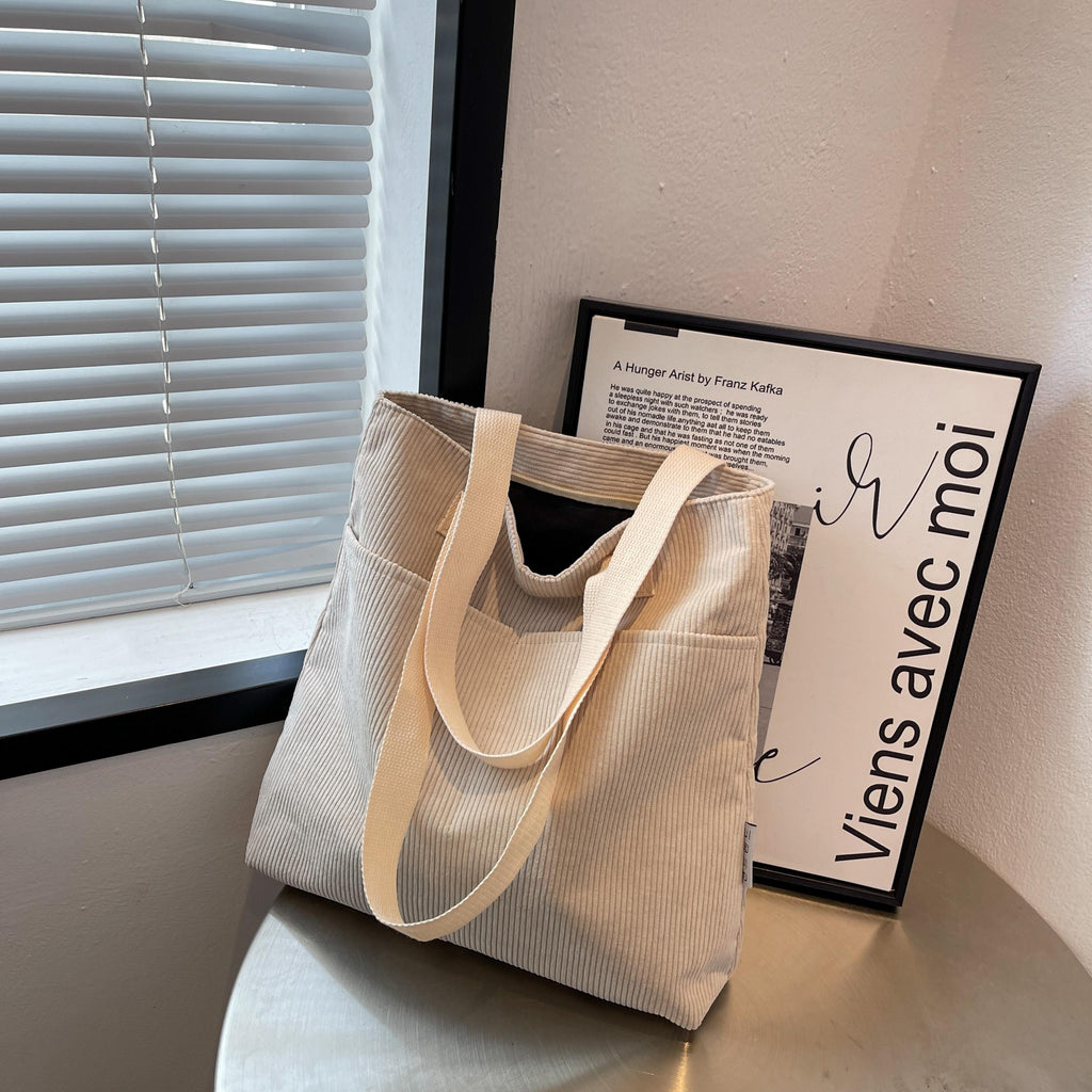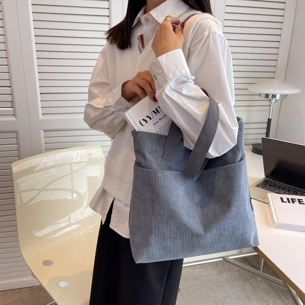 Corduroy Shoulder Shopping Bag for Autumn and Winter