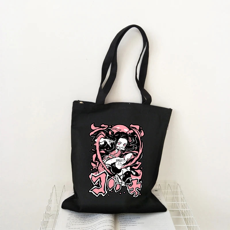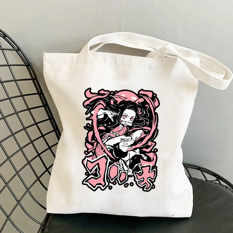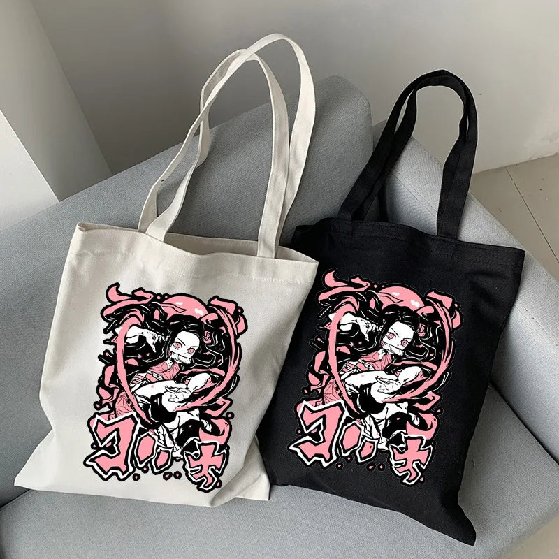Stylish Y2k tote bag featuring anime print design. Perfect for shopping or everyday use.