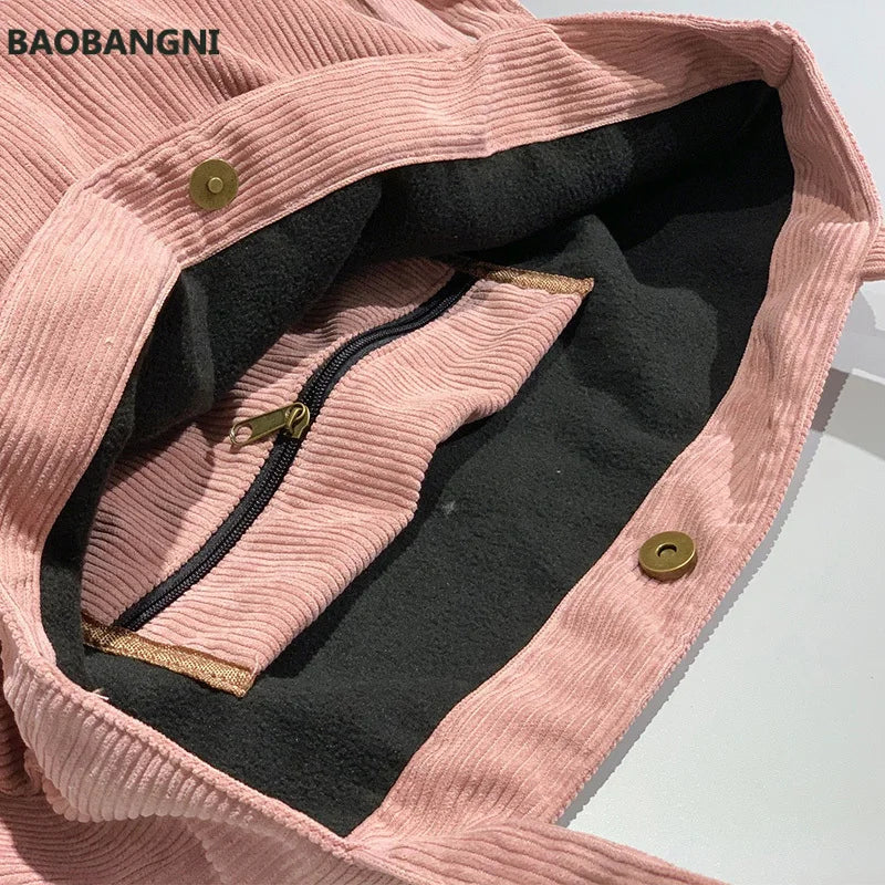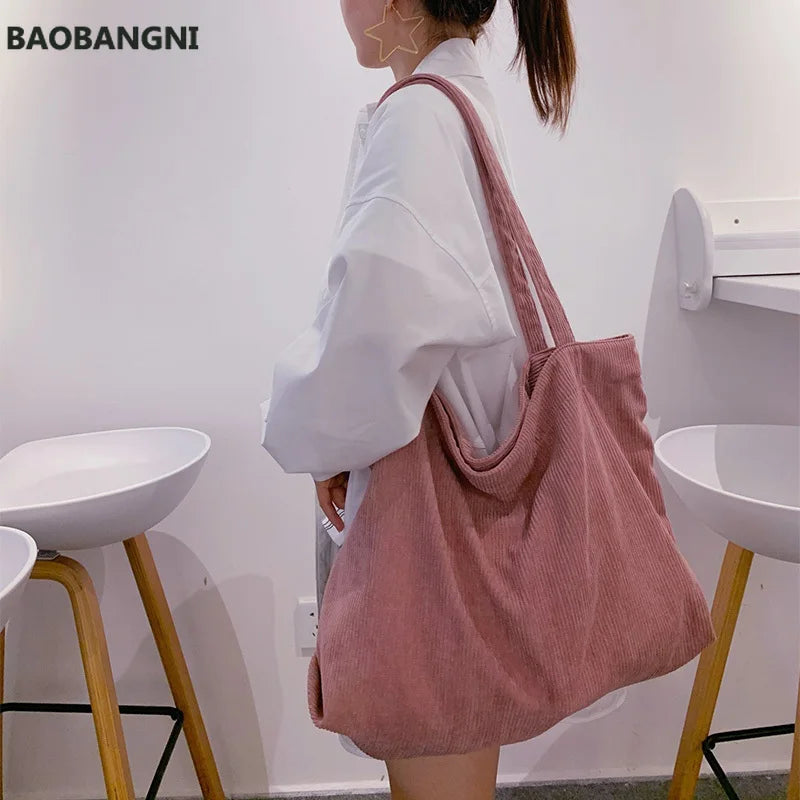 This canvas corduroy handbag is perfect for daily use, shopping, or travel. It is foldable and spacious, making it a versatile accessory for women.