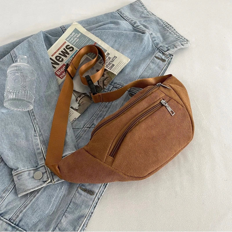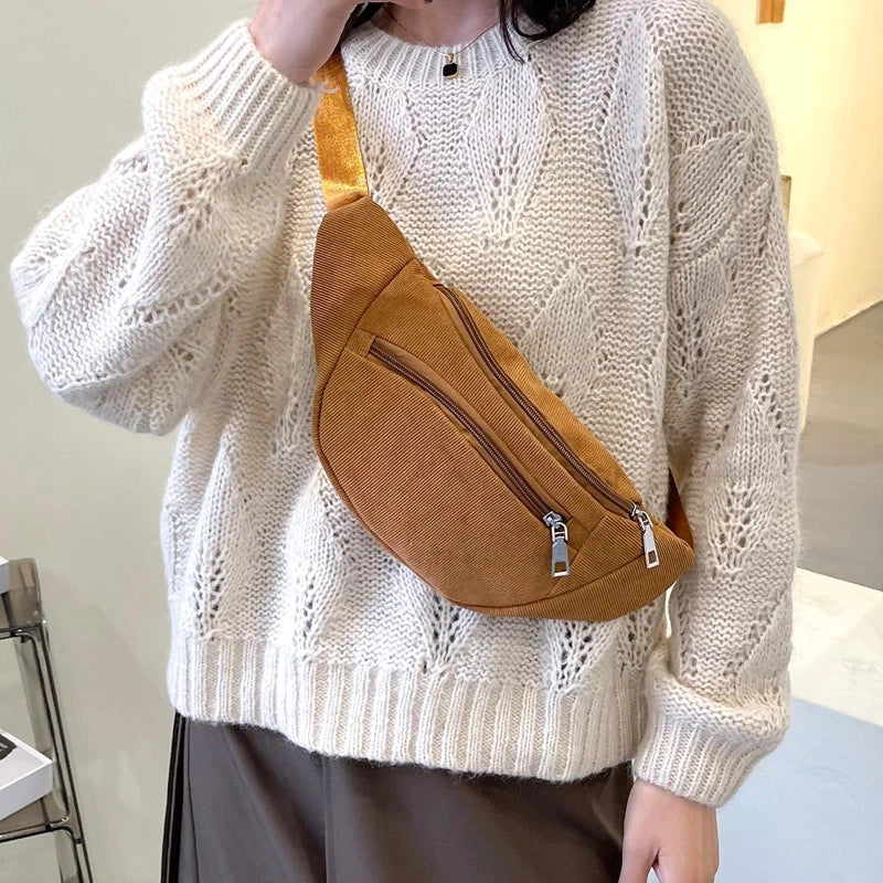 Corduroy Sling Waist Fanny Bag Zippered Sport Travel
