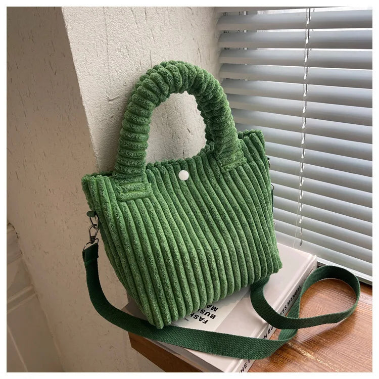 This stylish corduroy handbag is perfect for women who want a versatile option for everyday use. It can be worn as a shoulder bag or a crossbody bag, making it a functional accessory for any outfit.
