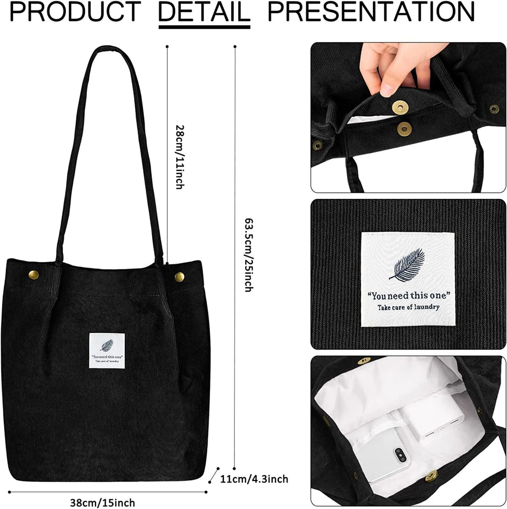 Corduroy Tote Bag Canvas Shoulder Purse with Inner Pocket