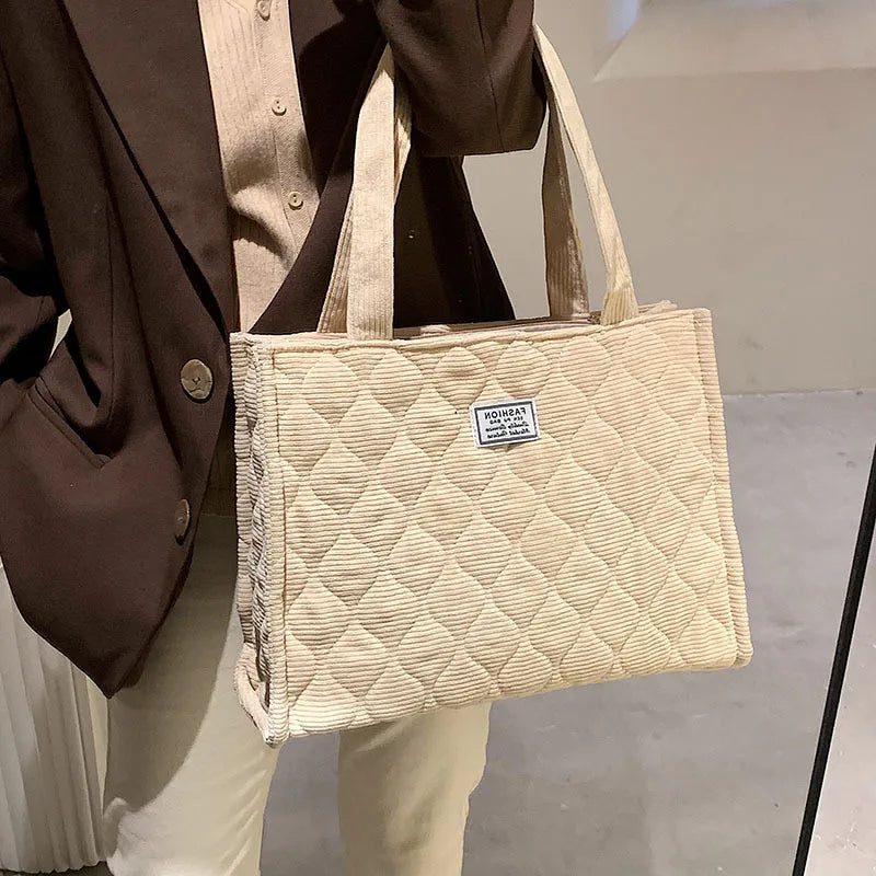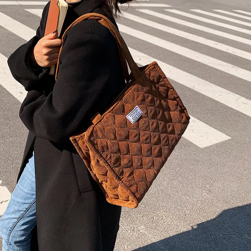 Stay stylish with this large capacity corduroy tote shoulder bag for women. Perfect for autumn and winter, it's ideal for shopping and everyday use.