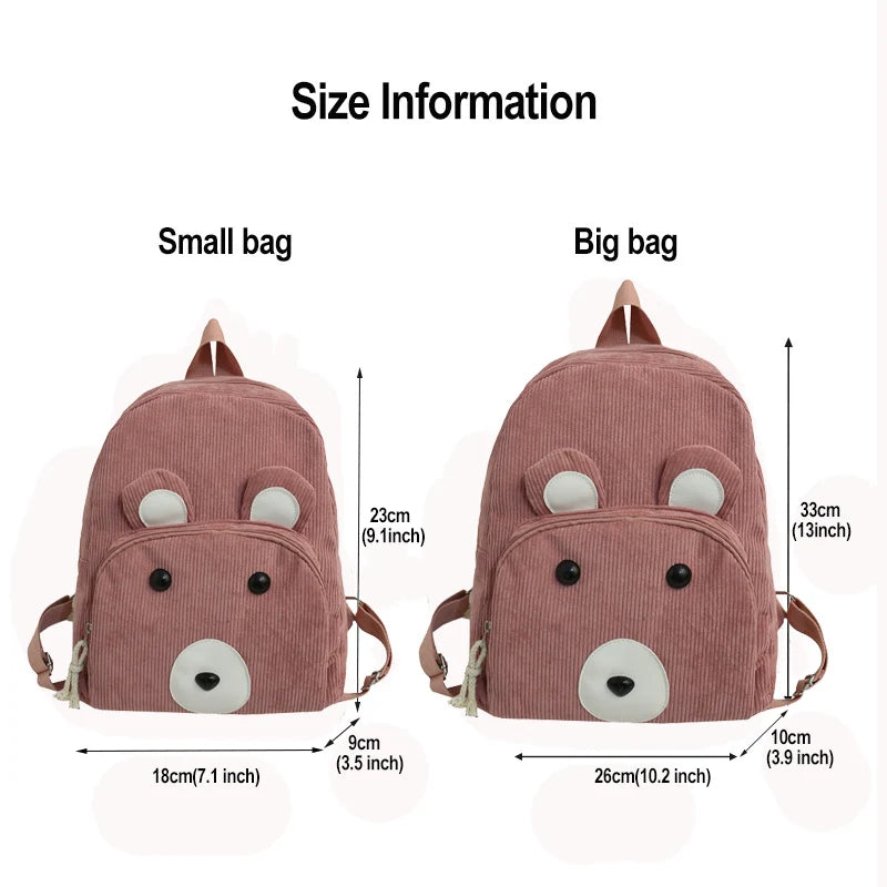This adorable corduroy backpack is perfect for women and students. It features a cute cartoon design and is great for travel or daily use.