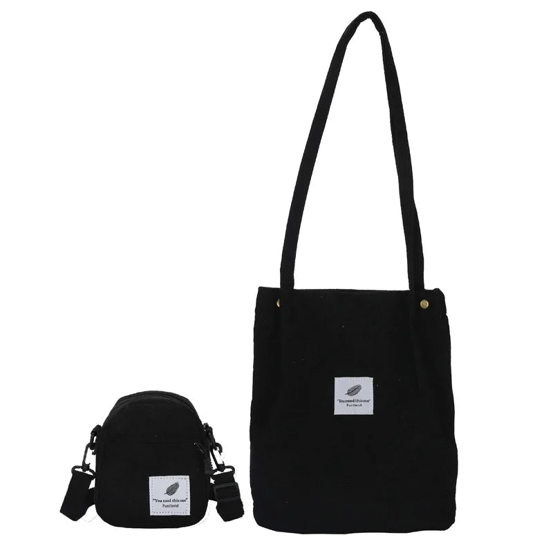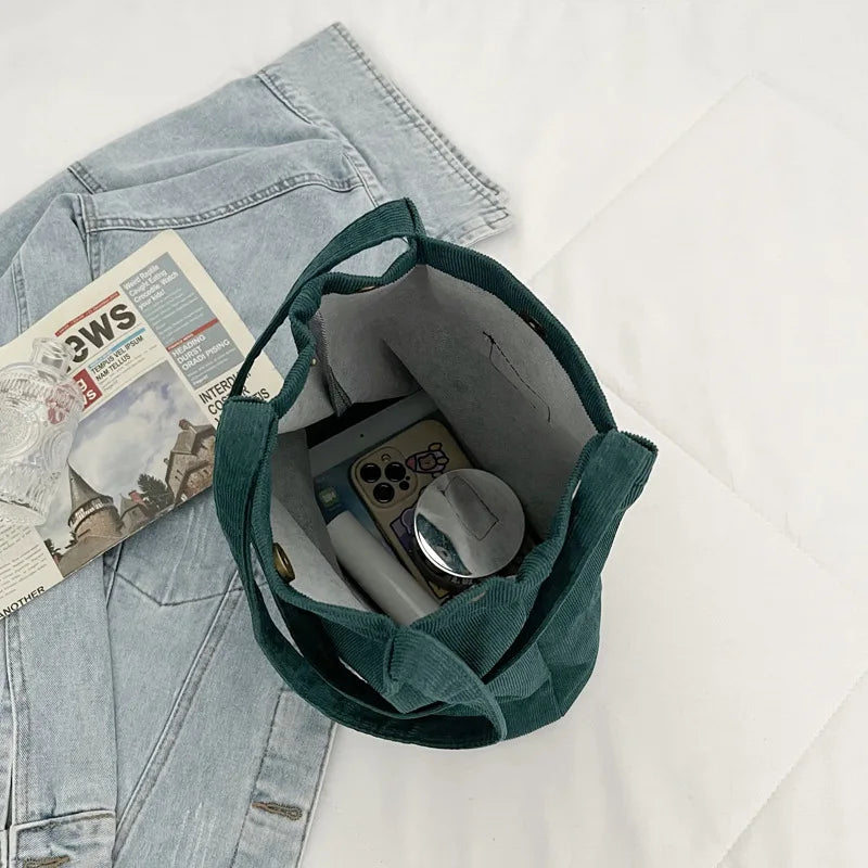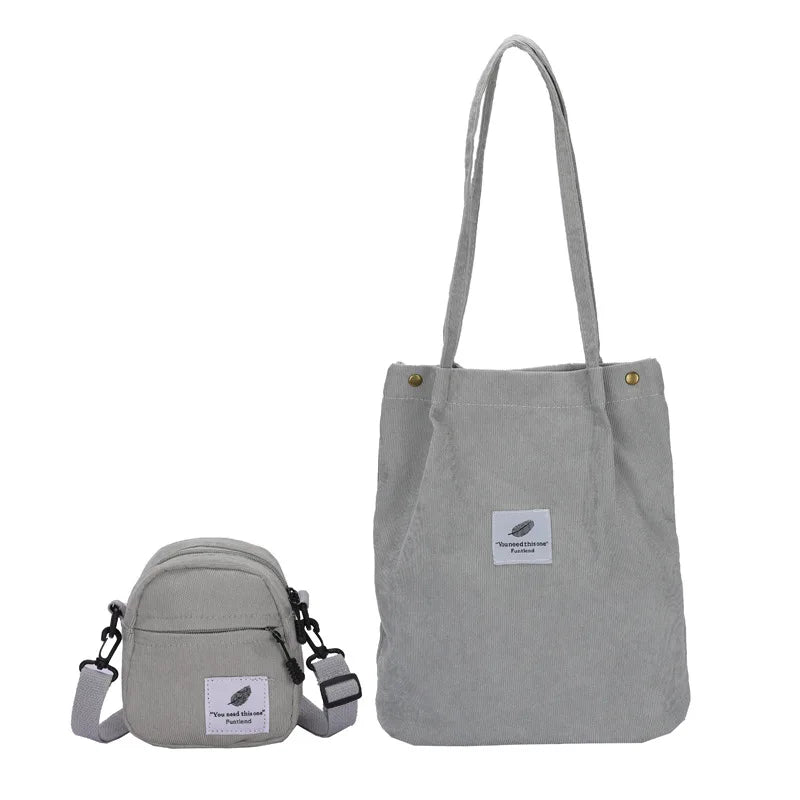 This convenient shopping bag is made from corduroy and canvas, providing a retro and trendy look. It has a large capacity to carry all your essentials in style.