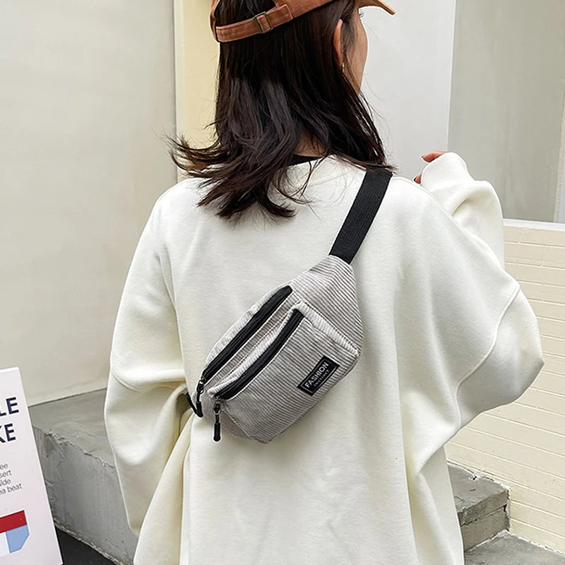 Corduroy Women's Waist Bag Canvas Shoulder Crossbody Fanny Pack