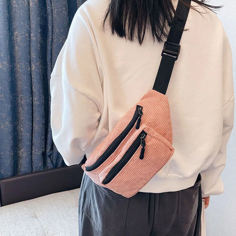 Corduroy Women's Waist Bag Zipper Chest Bag