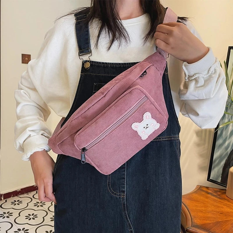 Corduroy Women's Waist Chest Bag Zipper Holder