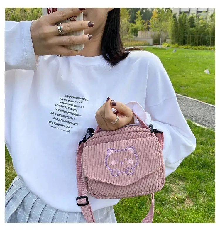Corduroy Zipper Bag Preppy Style Student Tote Shoulder Messenger Bags