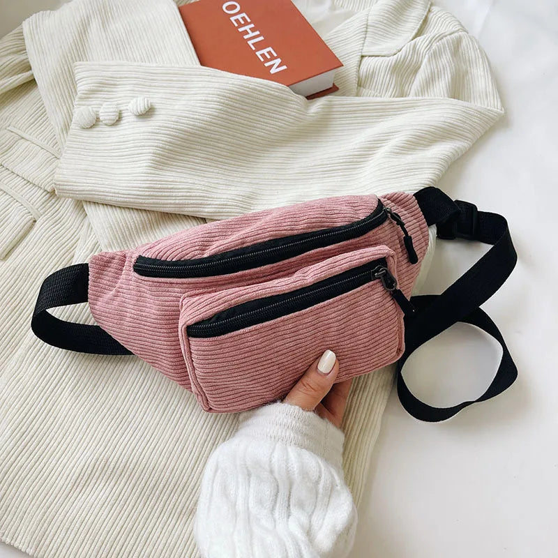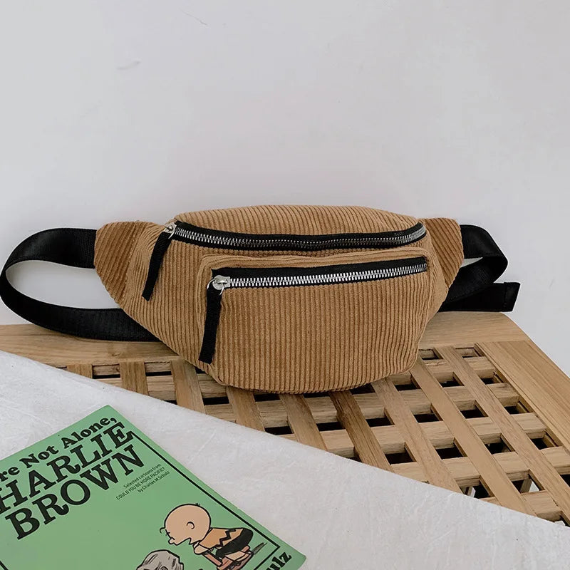Corduroy Zipper Waist Bag for Women