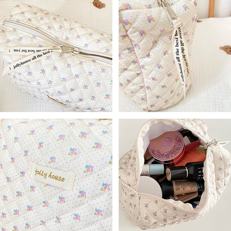 This cosmetic bag is perfect for storing makeup, lipstick, and other beauty essentials. It is ideal for travel or everyday use. The pouch can also be used as a pencil case for girls and women.