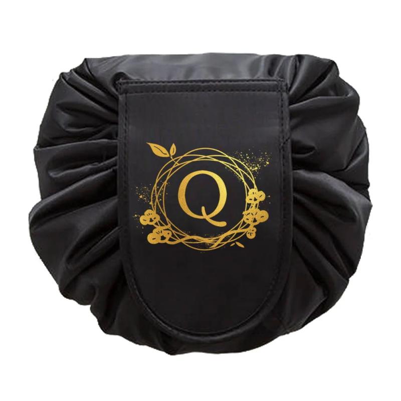 This women's drawstring cosmetic handbag features a stylish wreath print design, making it perfect for travel and organizing makeup essentials.