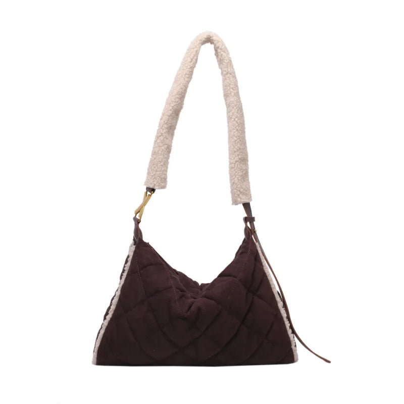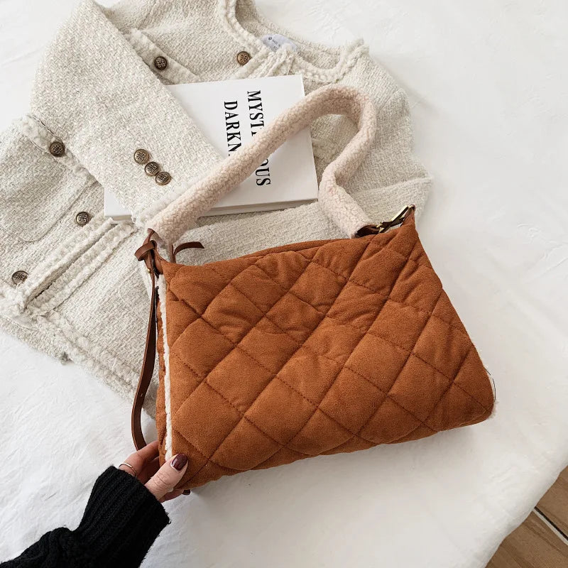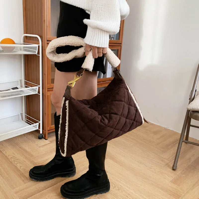 Cotton Shoulder Bag Large Capacity Shopping Handbag Plaid Shoulder Satchel