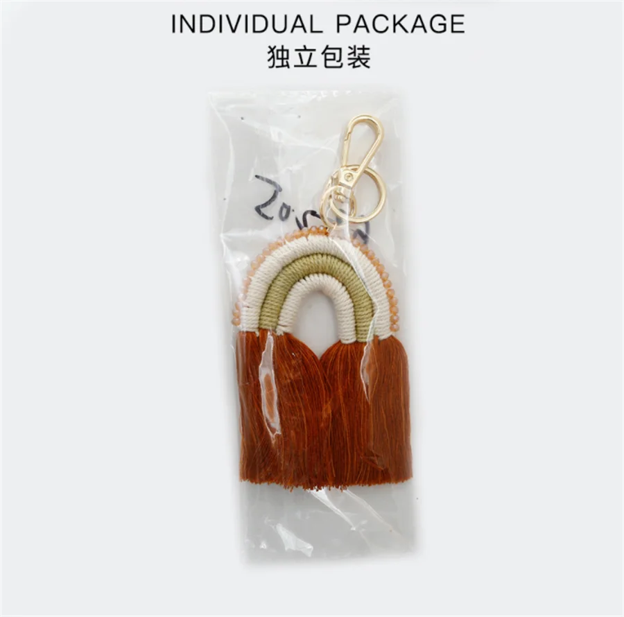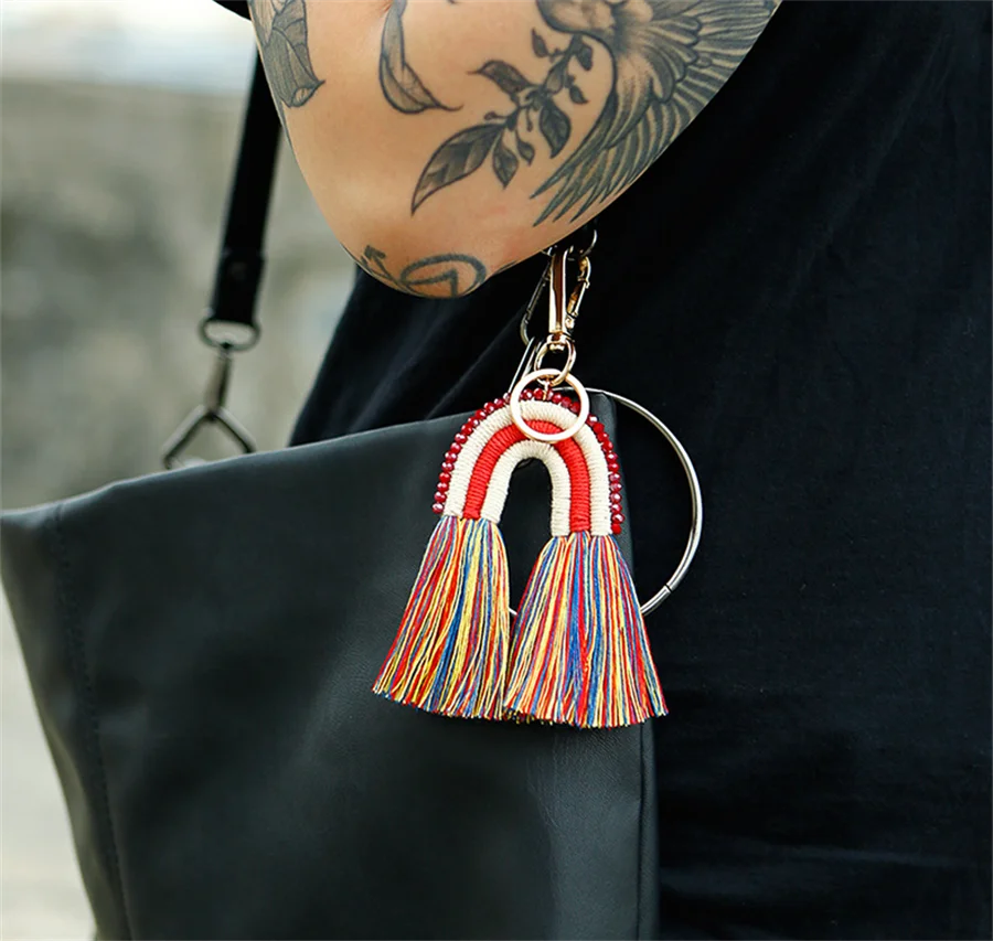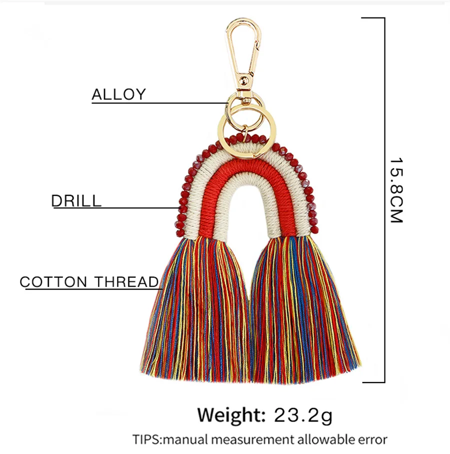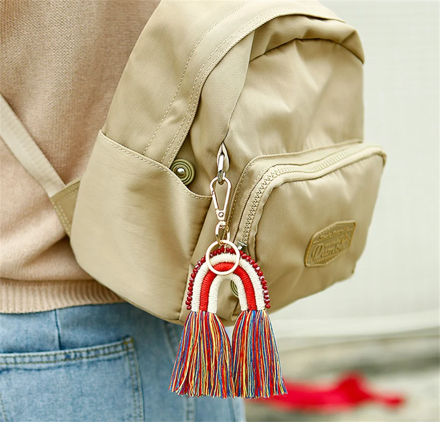 Add a touch of style to your accessories with this cotton tassel keychain. Perfect for phones, bags, and cars. Create a unique look with this versatile charm holder.
