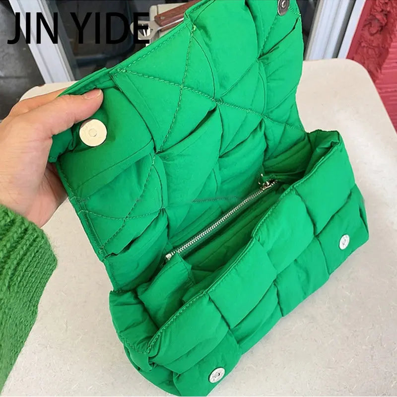 Cotton Women Shoulder Bag Padded Crossbody Space Square Handbag