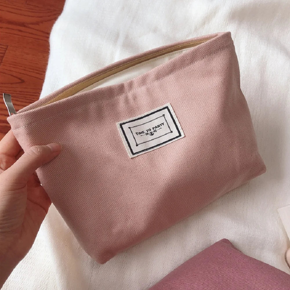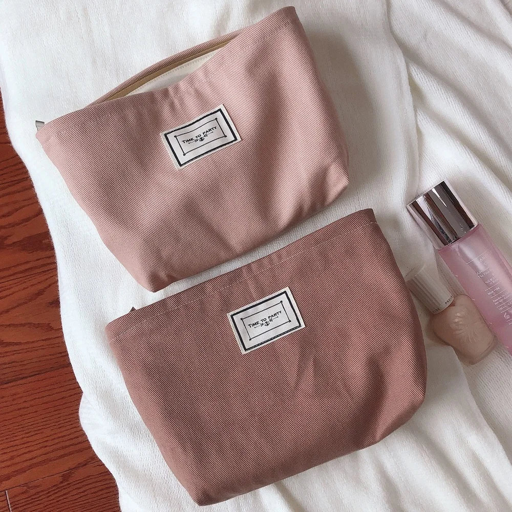 This canvas makeup clutch is perfect for storing your cosmetics and makeup essentials. It's a stylish and practical organizer for girls, featuring multiple compartments.