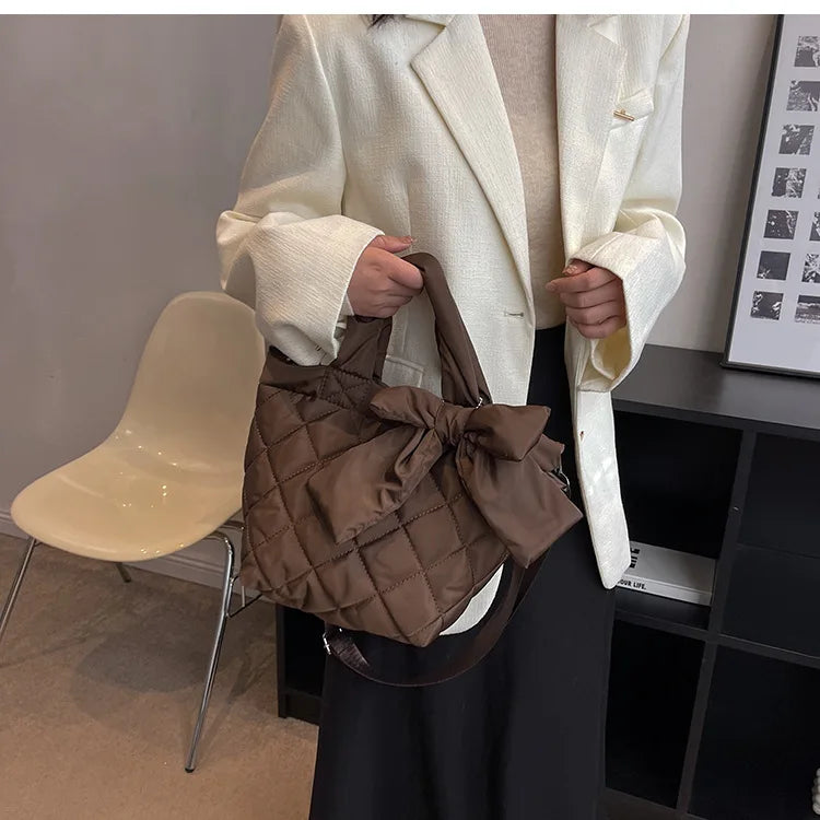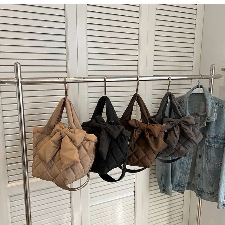 Cotton Women's Tote Bags Lady Shoulder Bag with Big Bow Nylon Handbags