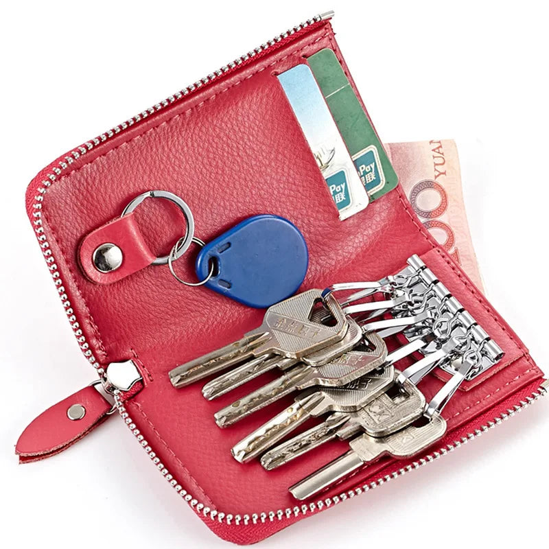 Keep your keys organized with this high-quality cow leather key bag wallet that features 6 key rings. Suitable for both men and women.