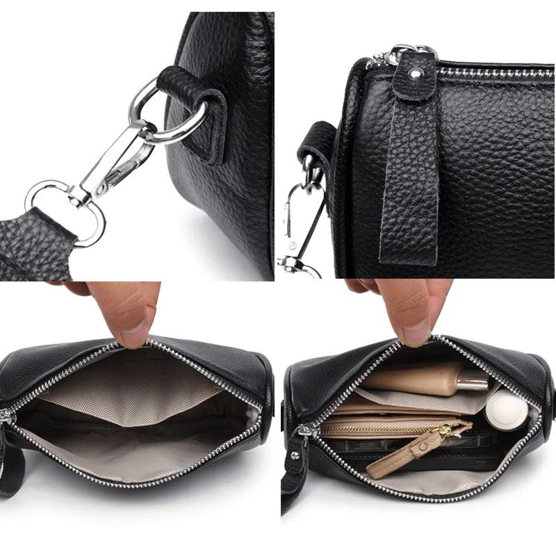 This handbag is made of 100% cow leather, perfect for everyday use. It features a shoulder strap and crossbody design, ideal for women on the go.