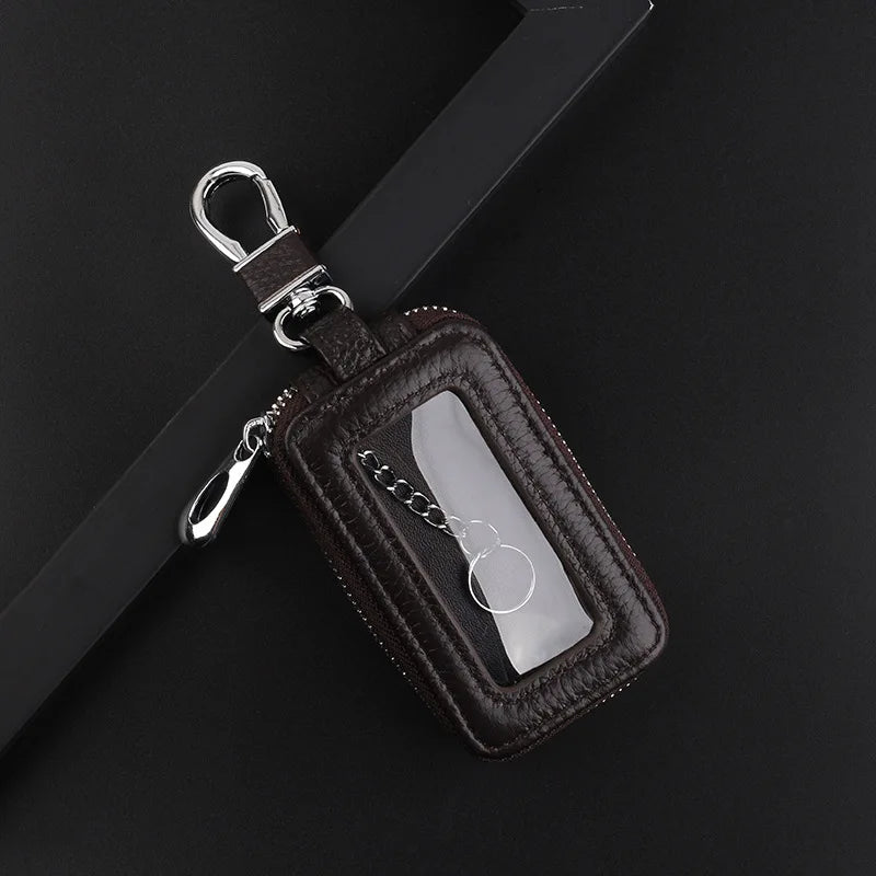This key box is made of genuine cow leather and features a large capacity to hold multiple keys. It is suitable for both men and women and can be used as a car key organizer or housekeeper key case.