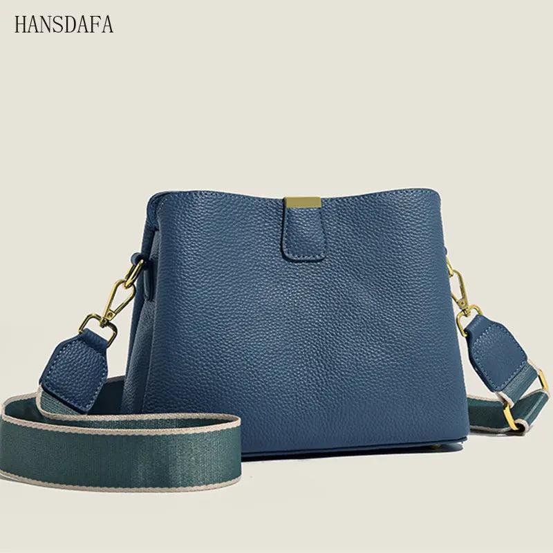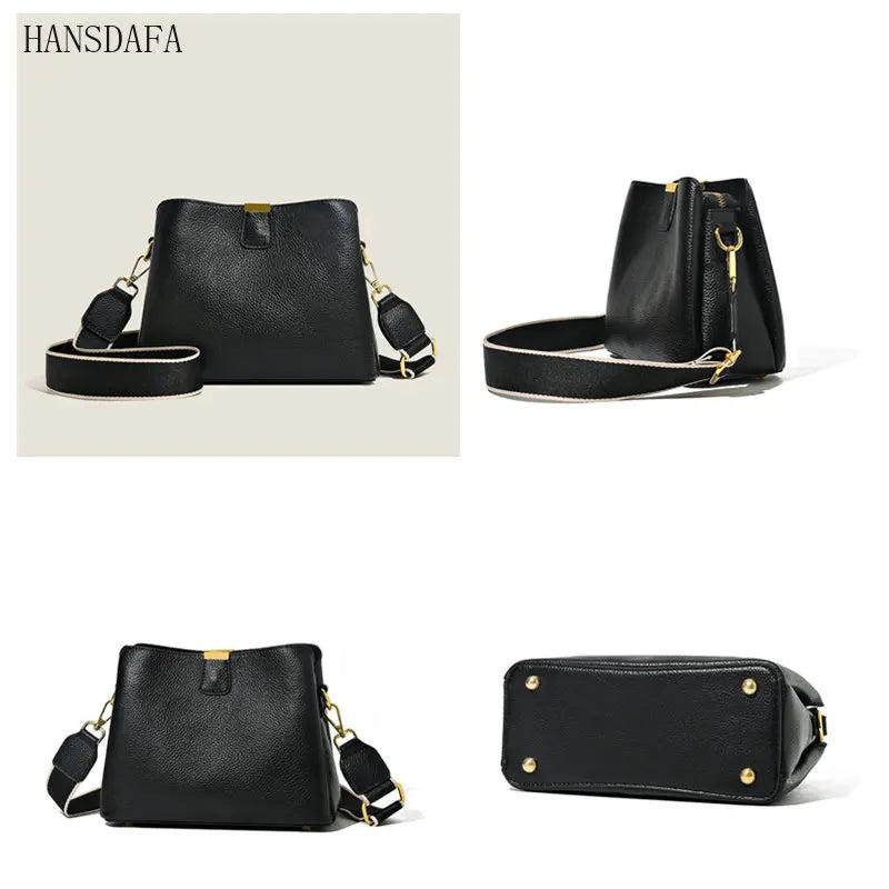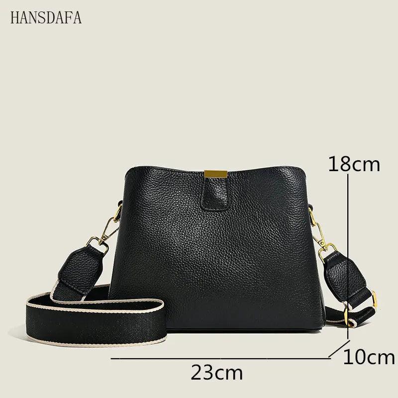 Cow Leather Women Shoulder Crossbody Bag 3 Layer Ladies Small Bucket Handbag