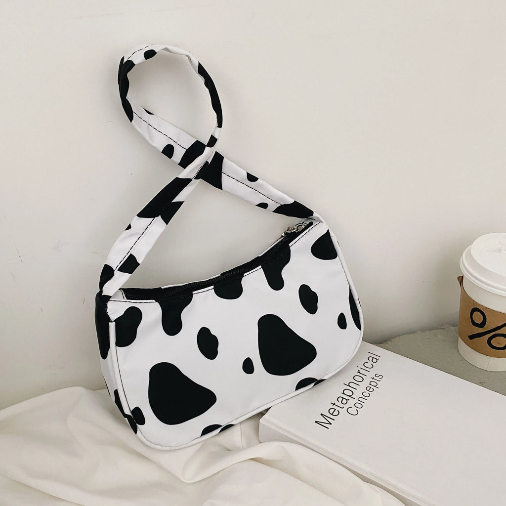 Stay stylish with this women's cow milk print handbag that can be carried as a crossbody or underarm shoulder bag. Perfect for daily use.