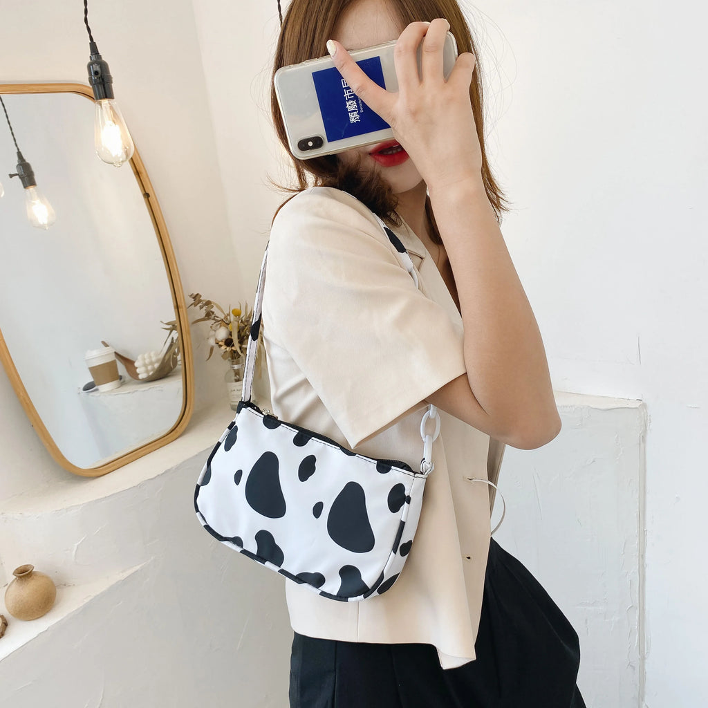 Cow Milk Print Handbag Totes Crossbody Underarm Shoulder Bags Daily Bag