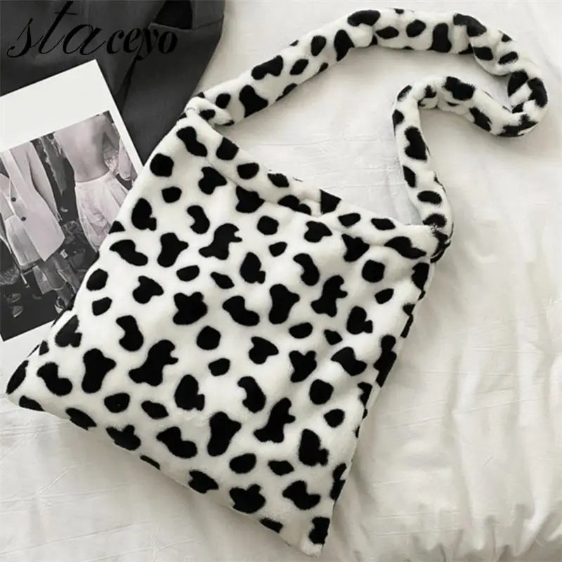 Stay stylish with this casual tote handbag featuring a trendy cow pattern. The bag offers a large capacity for all your essentials and can be worn as a shoulder bag or messenger bag.