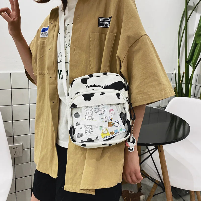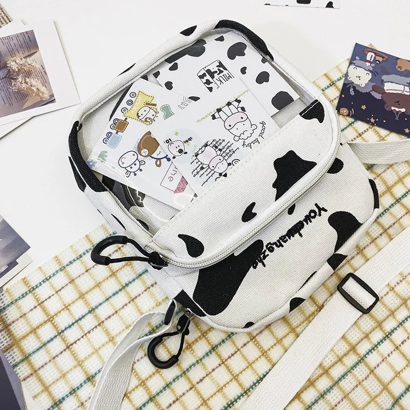 Stay trendy with this hot cow print canvas crossbody bag for women. Perfect for casual outings and a stylish addition to your wardrobe.