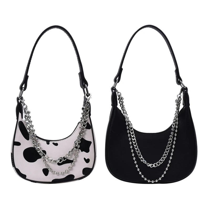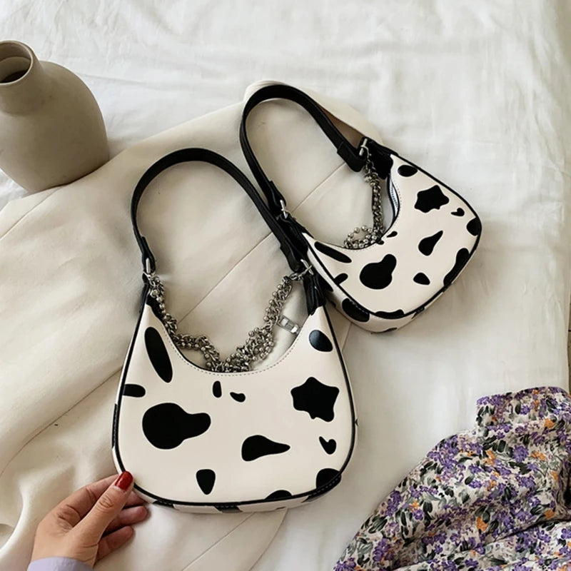 Cow Print Shoulder Bag Clutch Purse Underarm Handbag Satchel Zipper Tote Bags