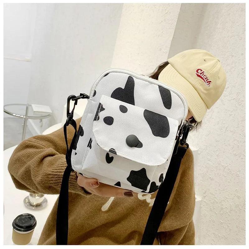 Stay stylish with this cow print crossbody messenger bag featuring a mobile phone pocket. Perfect for daily use and leisure outings.