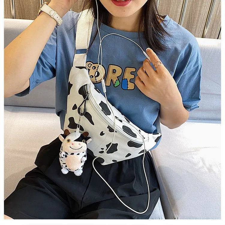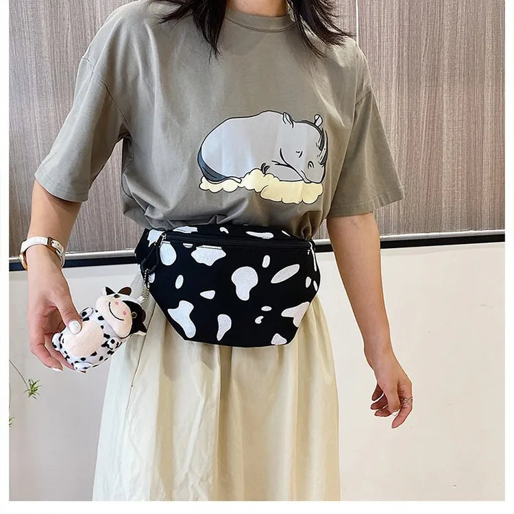 Stay stylish and hands-free with this cow print waist fanny pack that doubles as a chest crossbody bag. The adjustable strap ensures a comfortable fit for all activities.