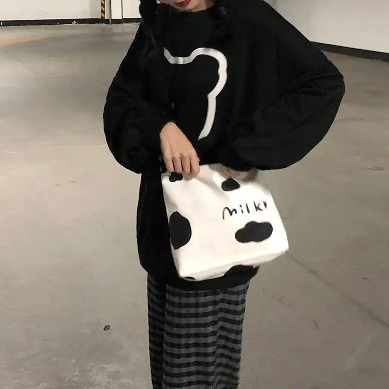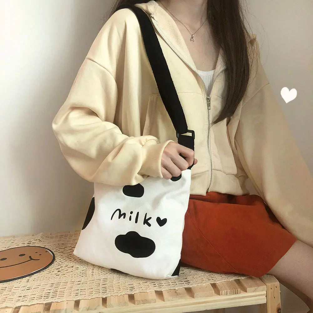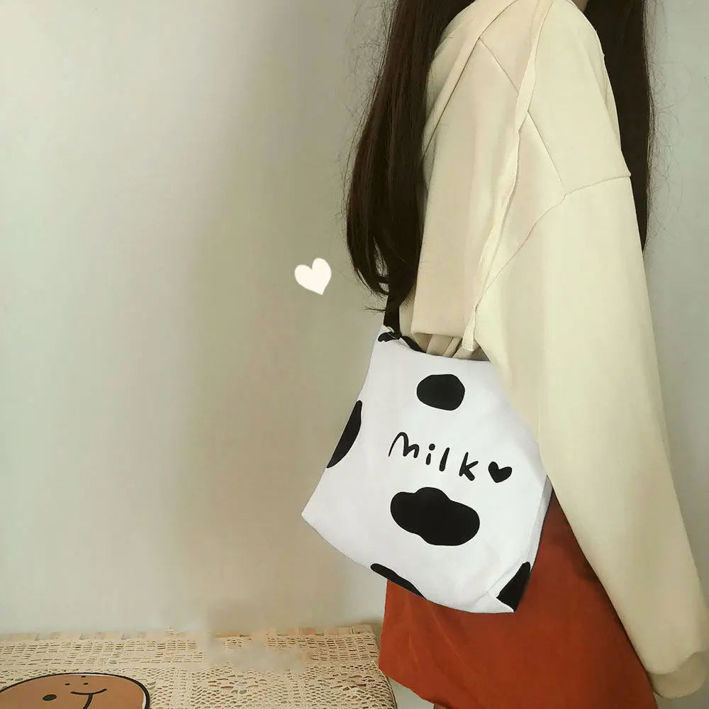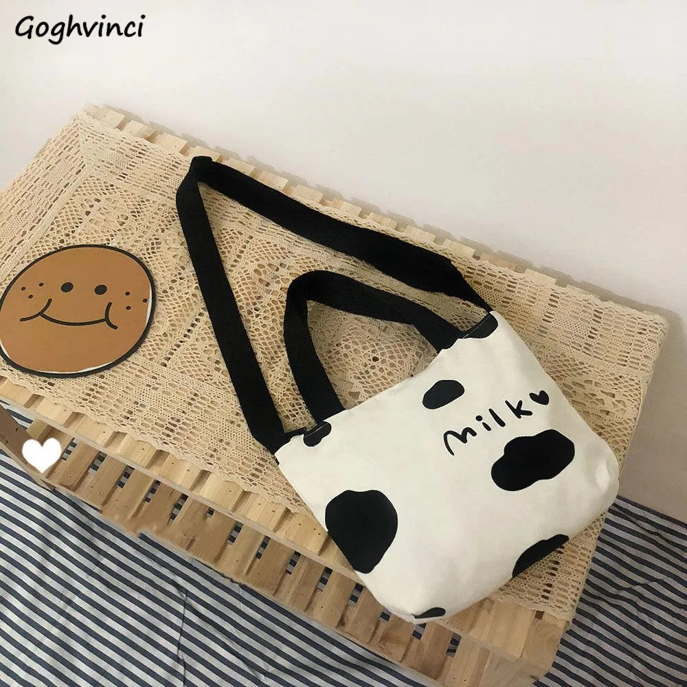 Cow Printed Shoulder Bags Women Canvas Bag Large Capacity Harajuku