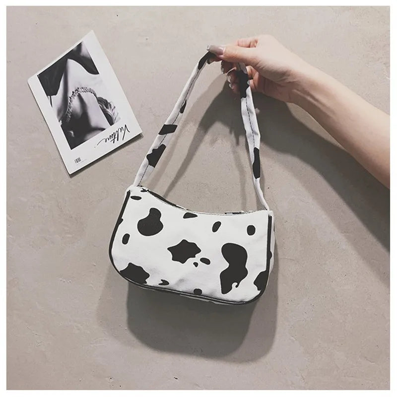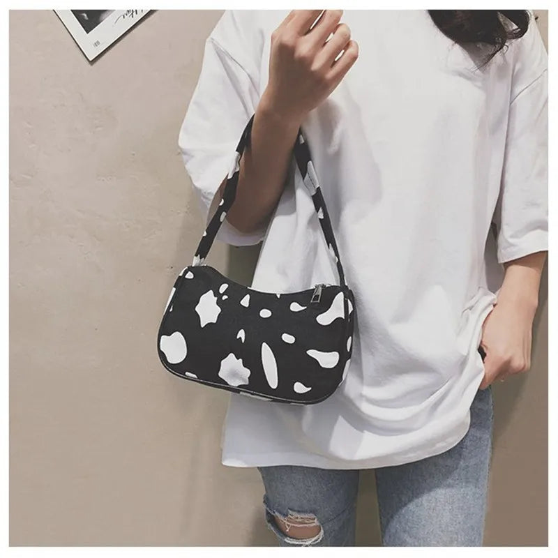 Fashionable cow spot printed canvas shoulder bag perfect for women. Ideal for casual use, this small underarm bag is both functional and stylish.
