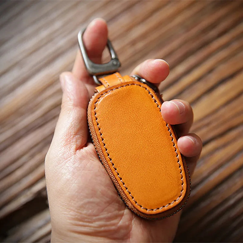 Cowhide Car Key Holder Pouch Bag Organizer Keychain Cover Male