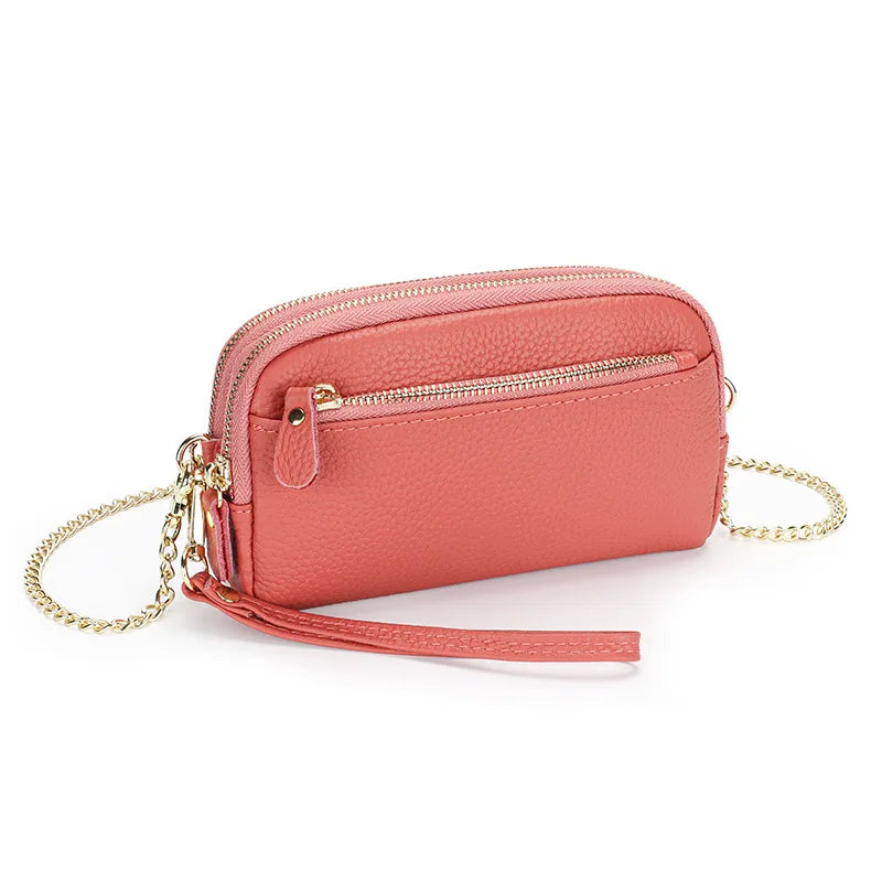 Cowhide Crossbody Phone Sling Bag Large Capacity Zipper Clutch Purse
