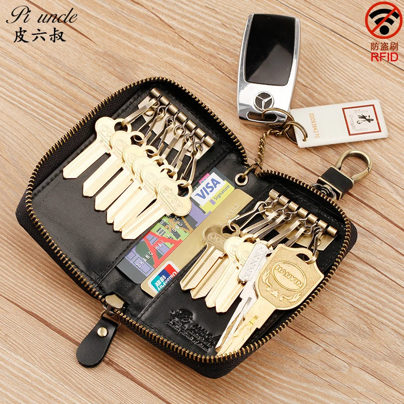Arrive in style with this multi-function men's key wallet made from the first layer of cowhide leather. Keep your keys organized and secure while adding a touch of vintage charm to your accessories.