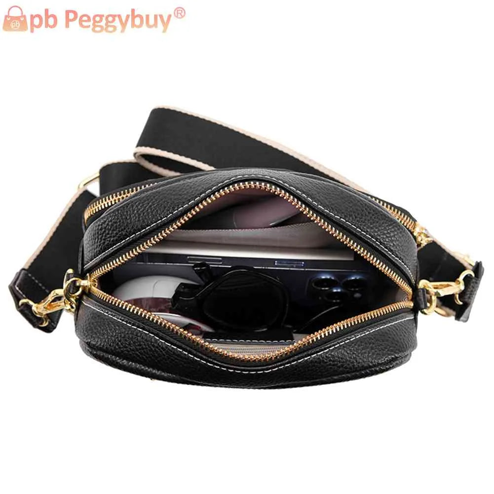 Stay organized with this stylish multi-layer pocket handbag made of durable cowhide leather. It features a wide strap, zipper closure, and a classic rhombus pattern.