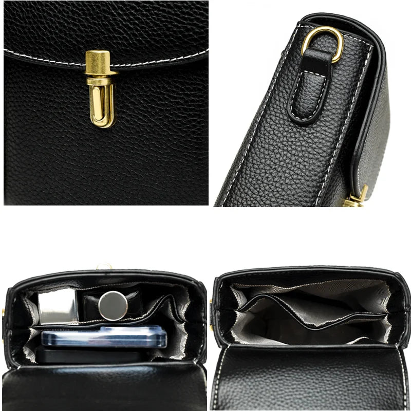 This stylish mini messenger bag is made of genuine cowhide leather, perfect for carrying essentials like your phone, wallet, and keys. The adjustable shoulder strap allows for easy customization of length.