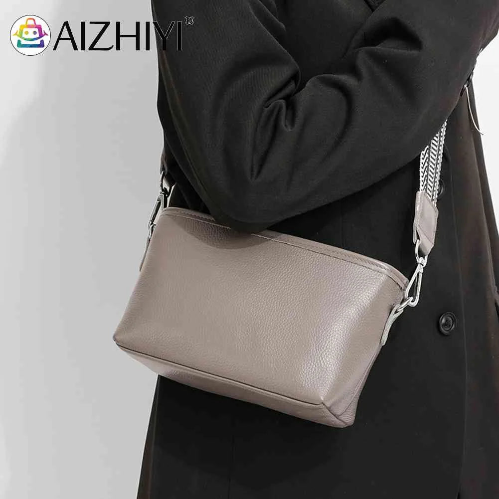 Cowhide Messenger Bag Wide Strap Casual Handbag for Weekend Vacation