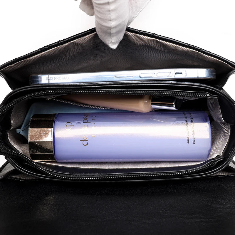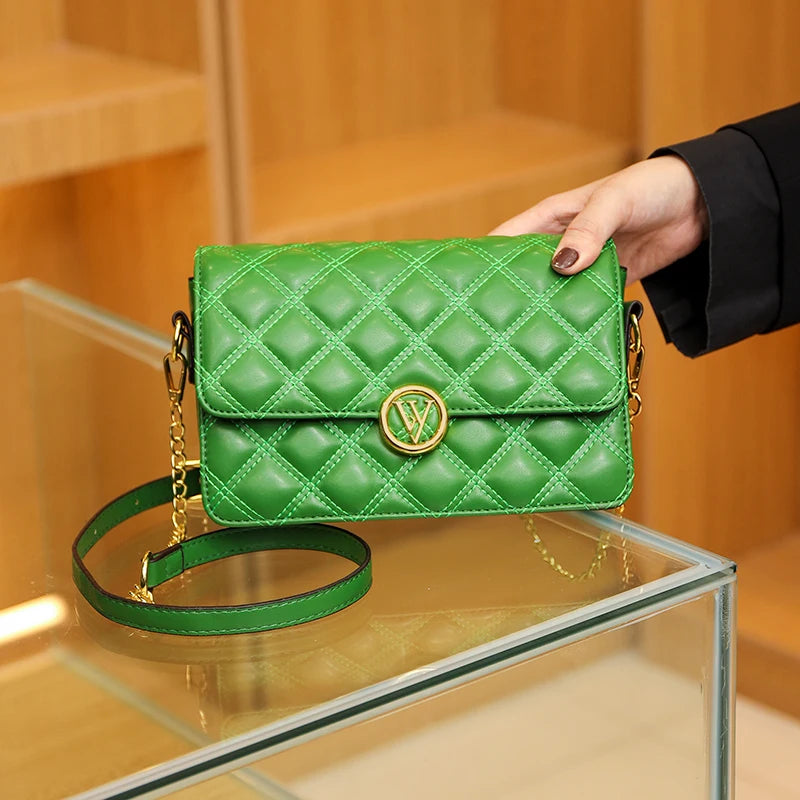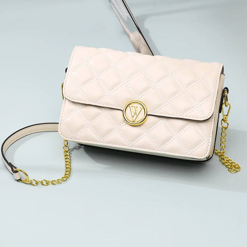 This stylish crossbody bag is made of high-quality cowhide leather and features a wide strap for comfortable wear. It has a multi-layer rhombus design that adds a touch of elegance to your outfit.