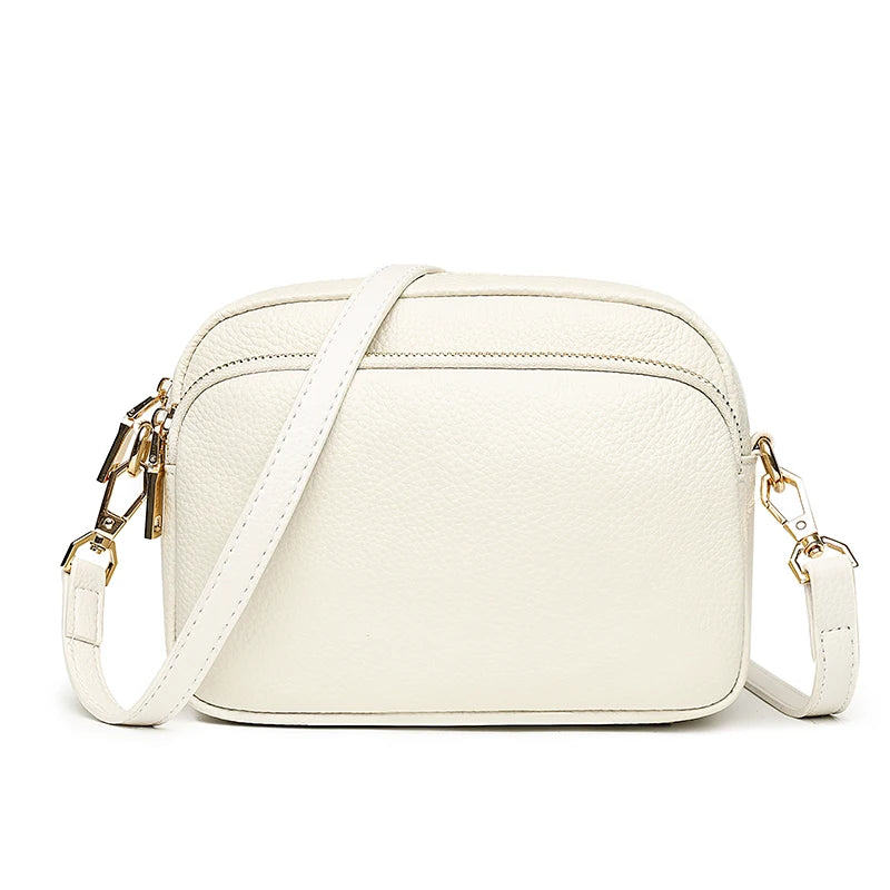 This stylish women's bag is made of high-quality cowhide top layer leather with a convenient zipper closure. It features a shell design and can be worn as a shoulder bag or crossbody bag.