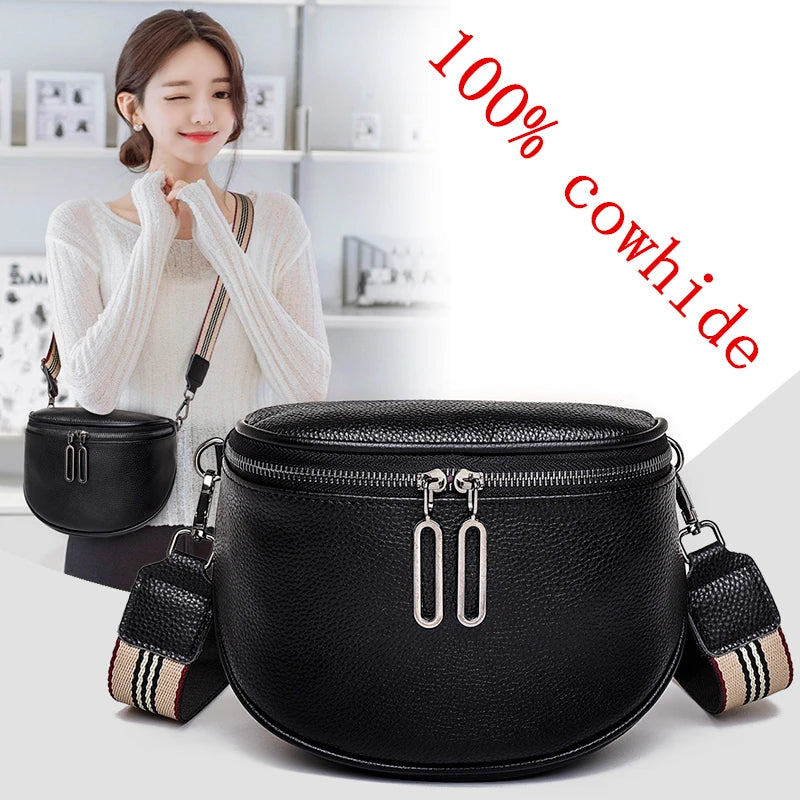 Cowhide Women Crossbody Bag Semicircle Saddle Bags Soft...