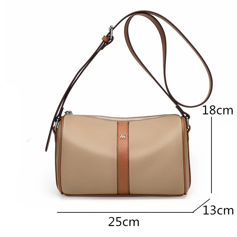 This leather handbag is perfect for everyday use with its spacious design. Made from high-quality cowhide leather, it is durable and stylish.