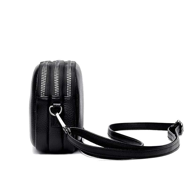 This casual leather shoulder bag is perfect for summer outings. High-quality cowhide with a small square design.