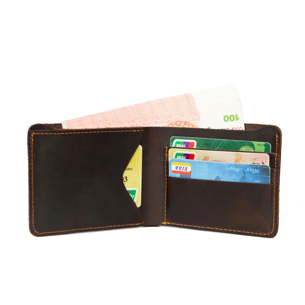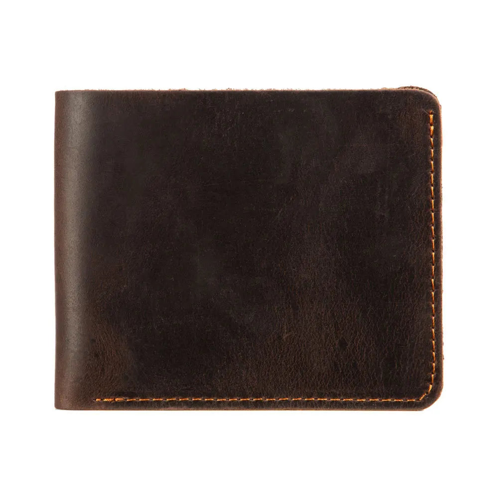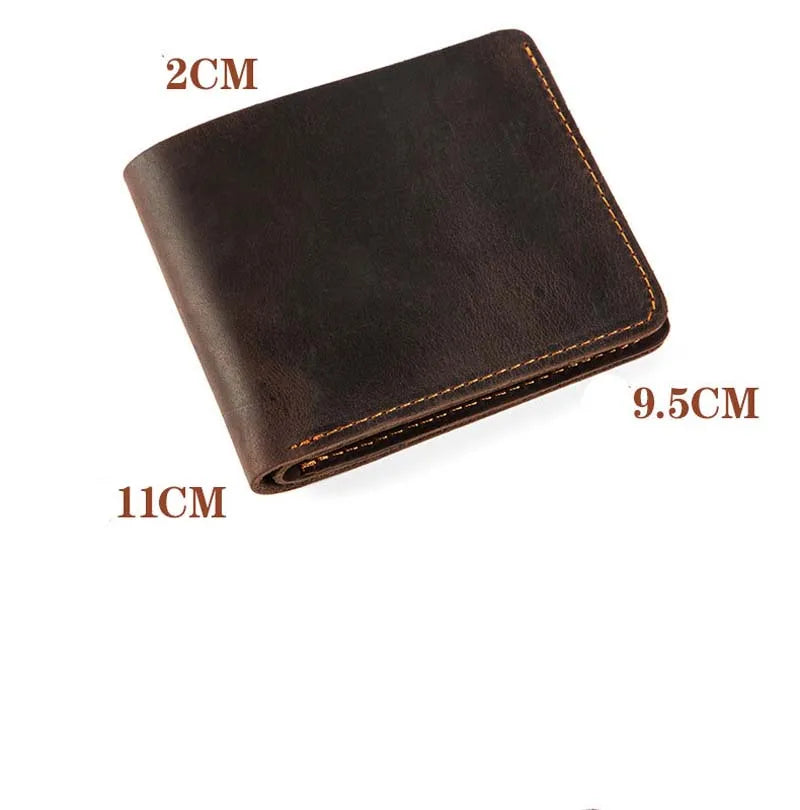 This horizontal wallet is made of high-quality crazy horse leather, providing a retro and European/American style. It features a dollar clip and is crafted from pure cowhide for durability.