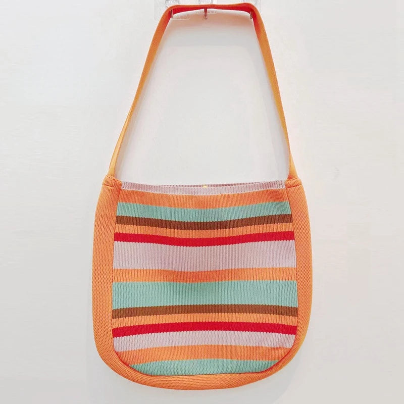 Elevate your style with this literary wool knitted shoulder bag featuring a unique stripe contrast design.