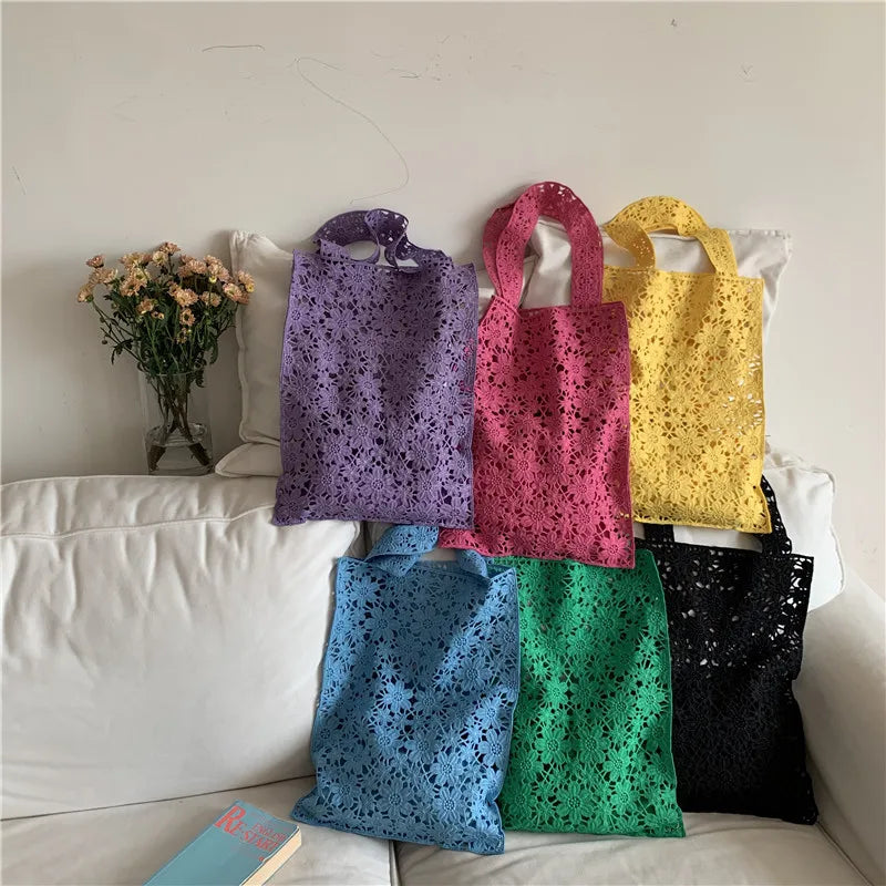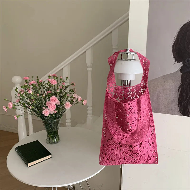 This handbag is perfect for beach outings with its crochet lace design. It is hand-woven and lightweight, making it easy to carry around. The one-shoulder and underarm straps provide versatility, and it is reusable for maximum convenience.
