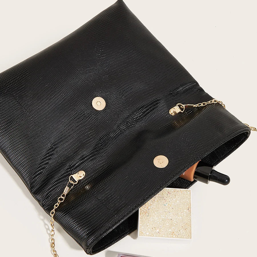 Crocodile Envelope Evening Bag Chain Strap Crossbody Purse